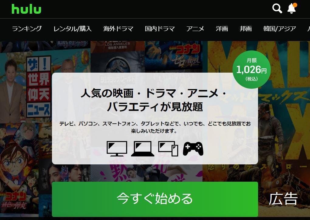 動画 【Hulu】なら月額1,026円でお気に入りのドラマが見放題!